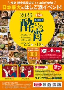 浅草観音裏周辺のはしご酒イベント。今年で6回目を迎えました。浅草のお店を気軽に知ってもらうため、